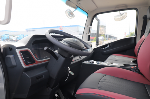 在驾乘体验方面,主驾配备气囊座椅,严格遵循人体工学设计,拥有出色的支撑性与包裹性,能缓解长时间驾驶所产生的疲劳感。此外,先进的隔音降噪技术以及卓越的悬挂技术,进一步提升了驾驶的静谧性和舒适性,无论是在高速公路上疾驰,还是在复杂的城市路况中穿梭,都能享受到德龍G300-AMT带来的舒适旅程。