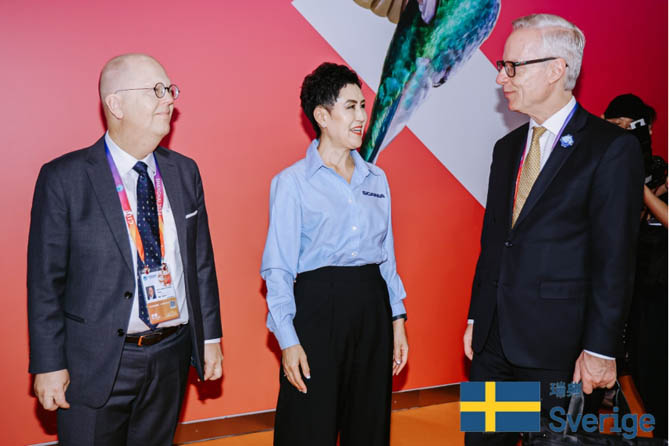 由左至右: Mats Harborn (传拓集团), Amanda Liu (斯堪尼亚亚洲工业运营), Per Augustsson(瑞典驻华大使)