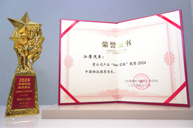江淮1van Van宝路荣获“2024中国物流推荐用车”称号
