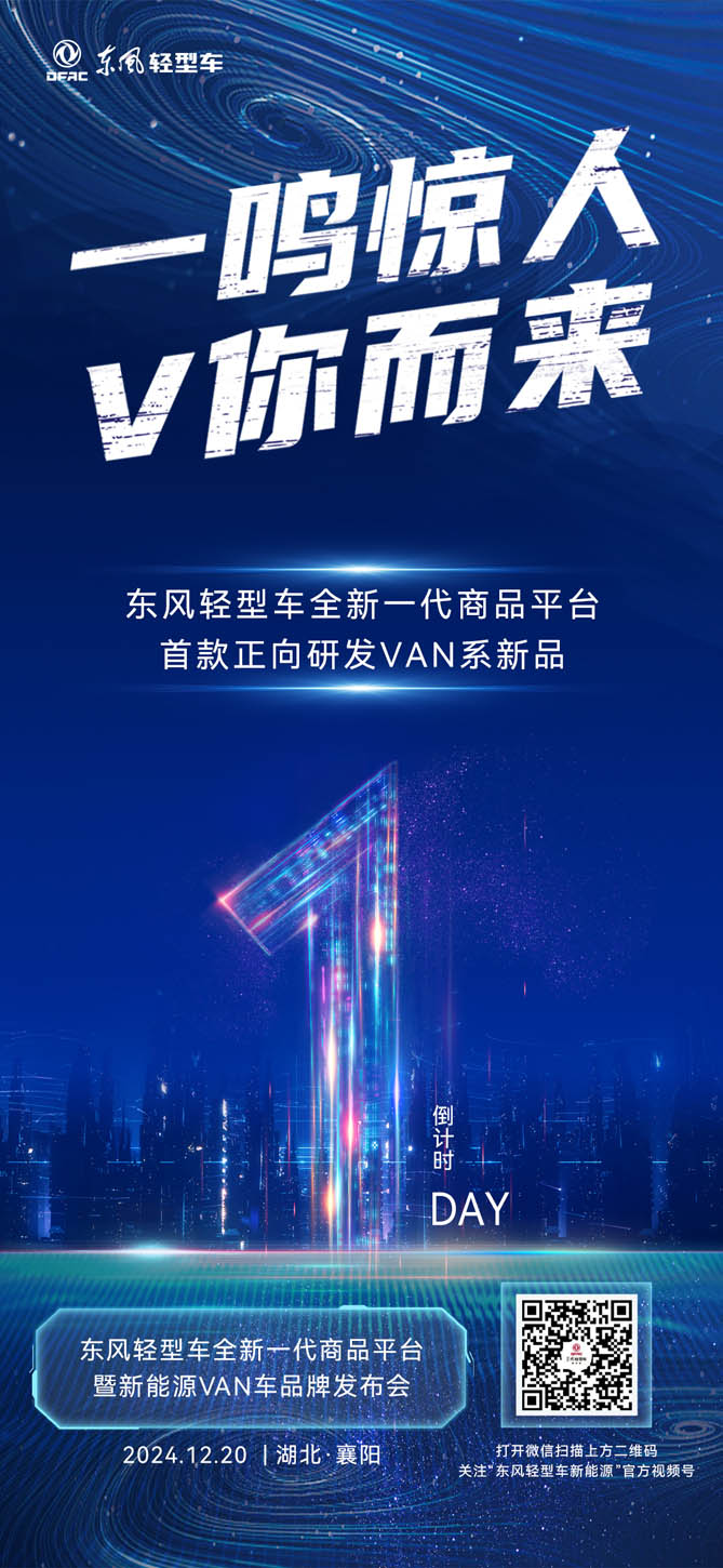 创新驱动发展,科技引领未来。当下,东风轻型车正以更加开放的姿态、更加创新的思维,不断探索轻型商用车领域的无限可能,致力为客户提供更高效、绿色、智能的运输解决方案,创造未来的VAN种可能。12月20日,让我们共乘东风,共赴新程,一同见证东风轻型车全新一代商品平台暨新能源VAN车品牌的卓越风采。