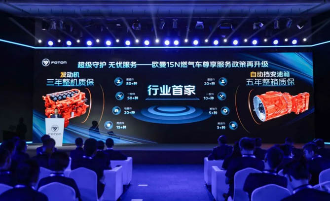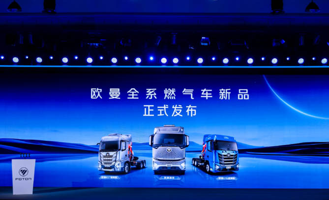 ▲福田欧曼发布全系燃气车产品及专属服务政策