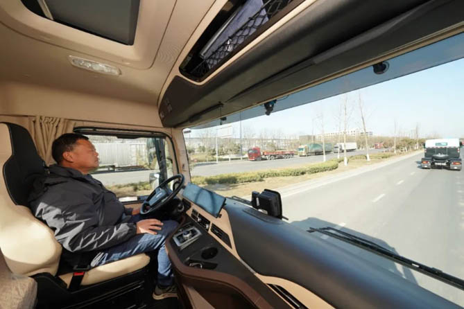 纯平地板设计,打造宽敞舒适的驾乘空间。卧铺宽度在同级别车型中独占鳌头,不仅标配600mm宽度卧铺,更可选配800mm伸缩卧铺。更有完整双道密封和全驾驶室的极致密封设计,静谧性达到国内顶尖水平。自主研发的智慧座舱,深度融合车端和云端数据,搭载适用于重卡应用场景的硬件和软件系统。具备强大的语音交互功能,只需轻轻呼唤“旺财,旺财”,语音助手即刻响应。