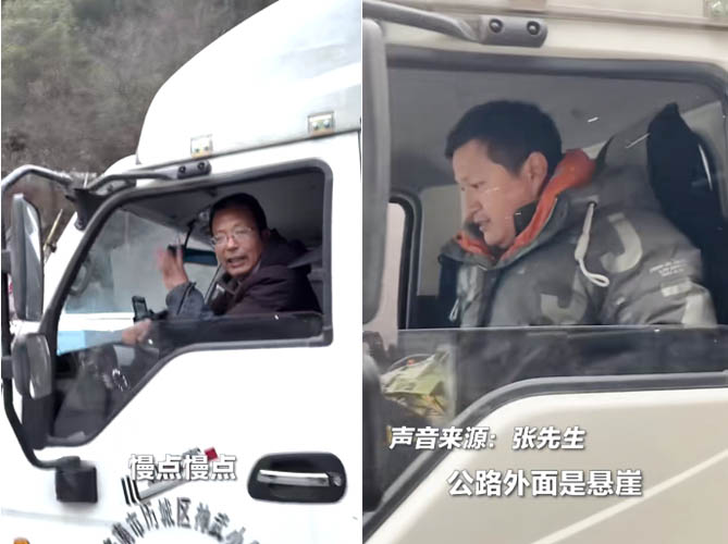 弯多路陡,艰险的路况摆在眼前,路人纷纷建议李师傅掉头,但返回去也要开半小时,风雪越下越大,同样面临艰难险阻。