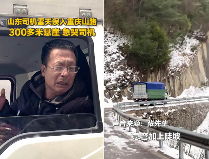 难题落在了来自山东的货车司机李师傅身上。当他驾驶江淮1卡康铃,载着满满一车货,行驶到重庆城口一段盘山公路时,望着旁边大约300多米高的陡峭悬崖,急转弯的陡坡公路,因下雪结冰的路面,李师傅打心底不敢冒险,只好无助地停车观察。