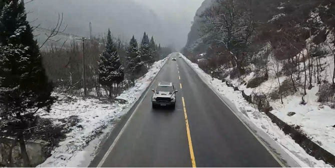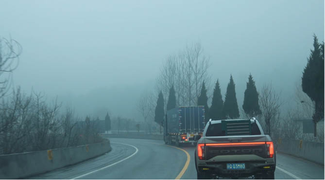 作为探路先锋,火星皮卡肩负着为欧曼银河开拓前行之路的重任。在穿越秦岭时,这里道路狭窄,弯多且急,上下坡频繁,再加上雨雪天气导致路面湿滑,驾驶难度极大。火星皮卡搭载的百年康明斯动力基因柴油发动机及百年博世48V混动系统,加上采埃孚 8AT 变速箱默契配合,动力强劲,在爬坡时能够爆发出强大扭矩,轻松应对陡峭的上坡路段;下坡时,精准的动力控制与可靠的刹车系统,保障车辆平稳下行。其强大的四驱系统,能根据路况实时智能分配扭矩,在狭窄弯道处,精准的操控与稳定的车身姿态,让车辆轻松转弯。同时,专业的底盘调校使车辆在频繁的上下坡和弯道中保持良好的稳定性 ,250mm 的超高离地间隙无惧道路上可能出现的坑洼与石块。面对雨雪路滑的情况,火星皮卡优质的轮胎花纹设计,提供了出色的抓地力,稳定的操控性能让它在湿滑路面上也能稳步前行,带领欧曼银河安全顺利通过秦岭,成功克服了这一极具挑战性的路况。