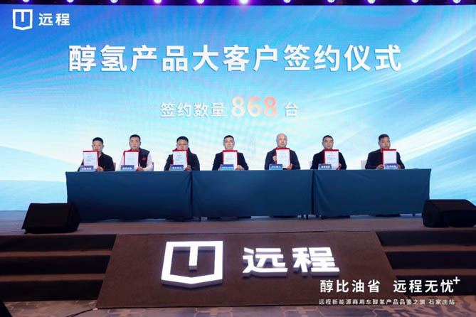 自2025年初“醇氢电动 向北向醇”战略启动以来,远程加速布局北方市场,醇氢电动车型的技术认知度与市场份额持续提升,活动现场共签约868台醇氢产品订单,标志着远程在京津冀地区的战略布局又迈出了重要的一步,也为远程后续深化北方市场渗透奠定基础。
