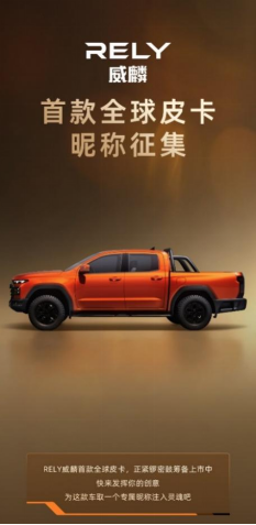 近日,RELY 威麟在其官方小程序开展了 “首款全球皮卡昵称征集活动”。活动表示:可用拟人形式命名,可酷炫可霸气可有趣,昵称简洁易记、朗朗上口即可。活动上线后获得网友们踊跃参与,截止目前已经收到100+个昵称。后续,这些昵称将通过筛选、投票环节确定最终优胜名称。