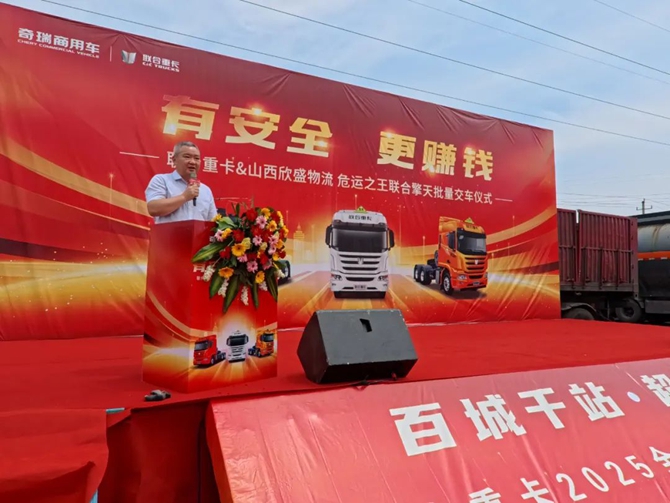 山西祁县欣盛运输有限公司董事长王鹏瑞表示,非常感谢联合重卡一直以来给予公司的鼎力支持与专业服务保障,车辆的优异表现,离不开联合重卡强大的技术后盾和完善的服务网络。随着新一批联合擎天的加入,标志着欣盛的运力规模和服务能力迈上了新台阶。公司将以此为契机,进一步强化安全管理,提升运输效率,深化与各方伙伴的战略协同,不断拓展业务版图。