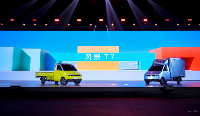 风景T7作为另一款“潮创实用纯电小货车”,以“多拉快省 好风景”为理念,怀揣着“以绿色科技构建末端物流新生态”的愿景,肩负“助力用户降本增效”的使命,为末端物流场景提供更优的绿色出行方案。依托VAN卡同平台优势,可提供单排和双排两种座舱空间选择,搭配三款电量与四种货箱长度,以模块化车身打造出丰富的产品矩阵,从容应对多样场景工况,满足各类用户的使用需求。风景T7对末端场景深入钻研,通过最长3.2米和最大9方的货箱,搭配平板、厢货、仓栅、翼展、冷藏五种货箱类型,精准契合不同场景的需求。