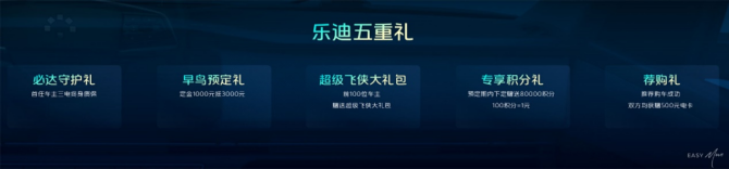 福田卡文乐迪售价9.98万元起,可根据需要选择智能化配置,首批下定用户将享受五重大礼:必达守护礼,首任车主三电终身质保;早鸟预订礼,定金1000元抵3000元;超级飞侠大礼包,前100位车主,赠送超级飞侠大礼包;专享积分礼,预订期内下订赠送80000积分;荐购礼,推荐购车成功,双方均获赠500元电卡。