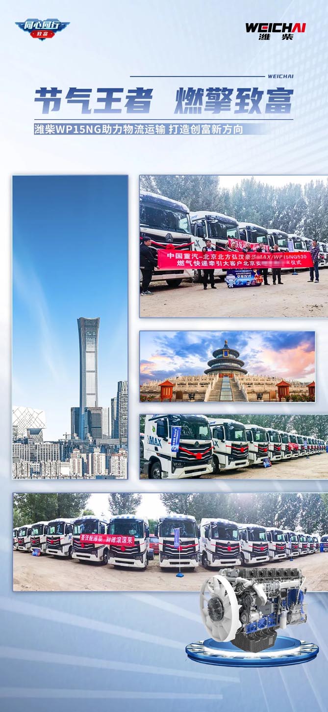 潍柴大马力燃气动力在京的顺利交付,彰显了市场及用户的高度认可。未来,潍柴动力将继续以优异的性能指标,持续领跑行业,成为运输市场劈波斩浪的“利刃”,为物流行业带来高效的服务标准,创造新的行业标杆。