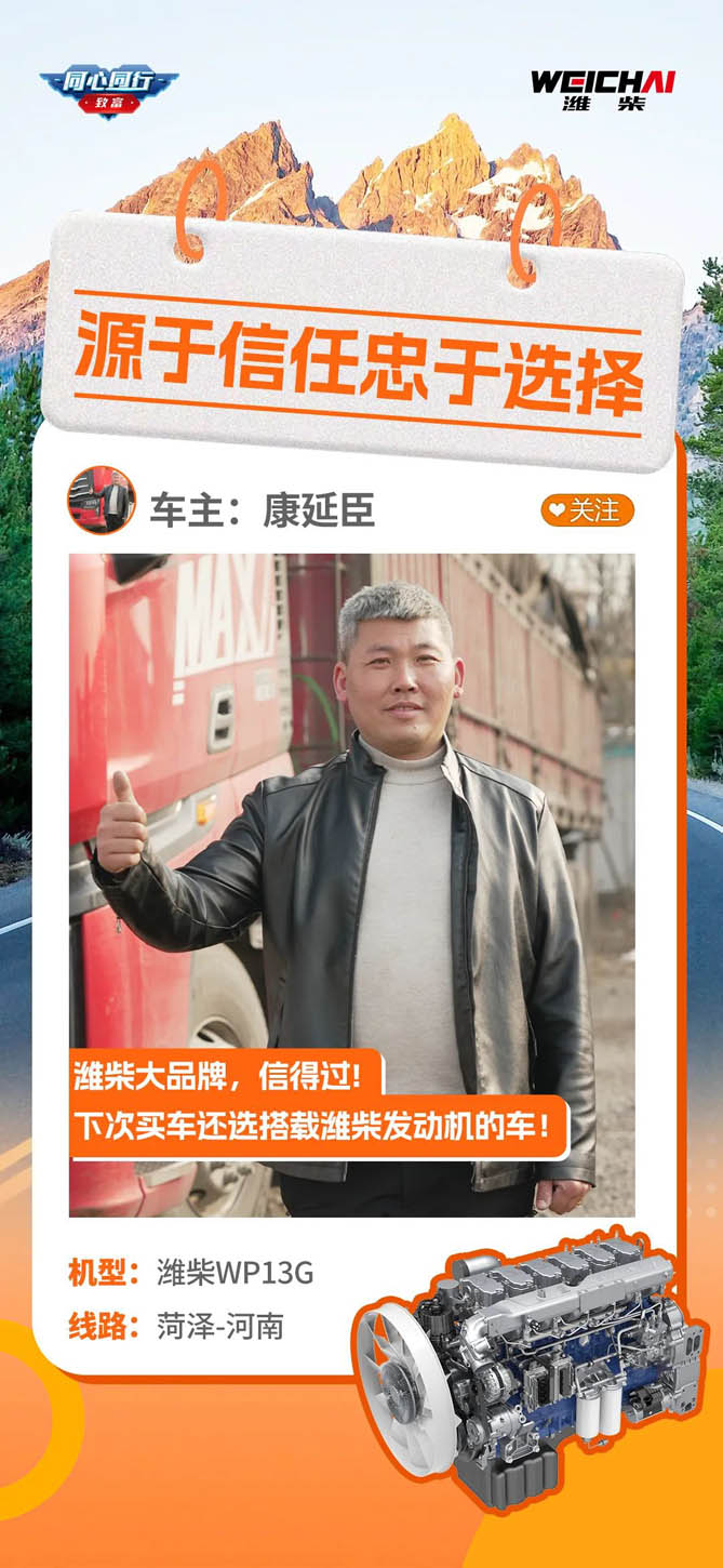 潍柴WP13G自推出以来,便凭借超节油、高品质的特质收获了一批铁杆粉丝,来自山东菏泽的车主康延臣便是其中之一。