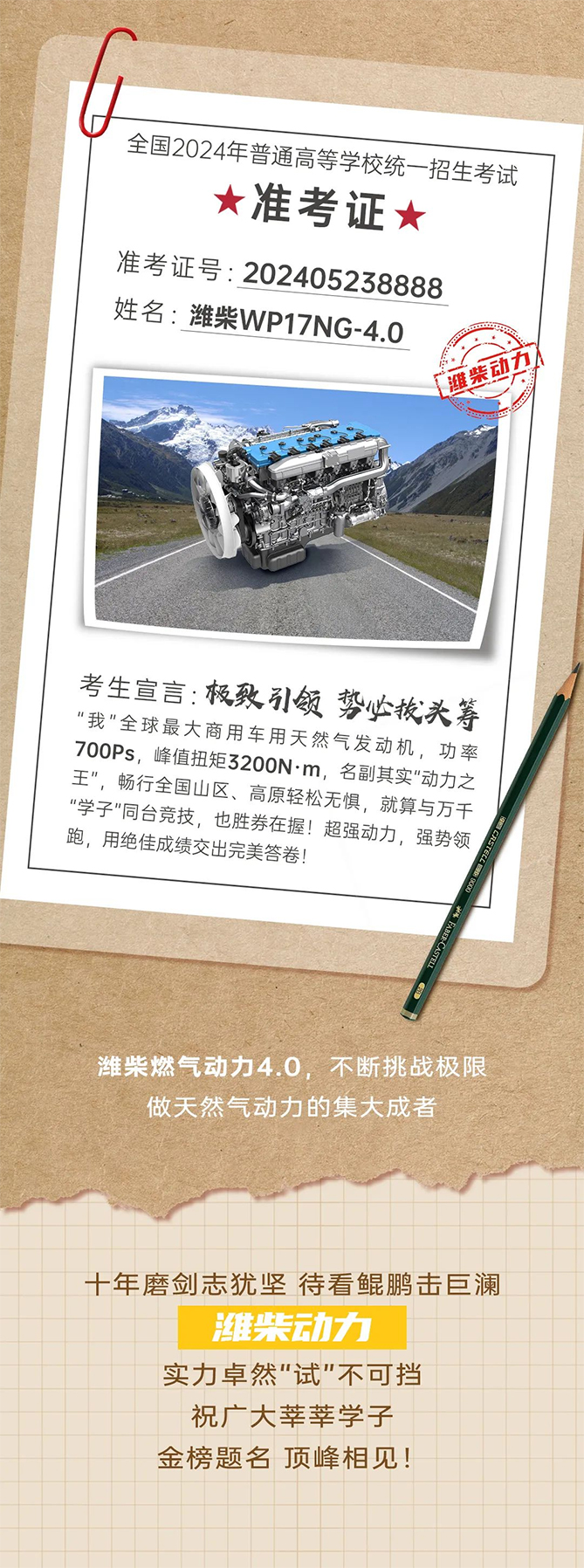 金榜题名 动力之巅 | 潍柴NG-4.0燃气动力,祝莘莘学子马到成功!
