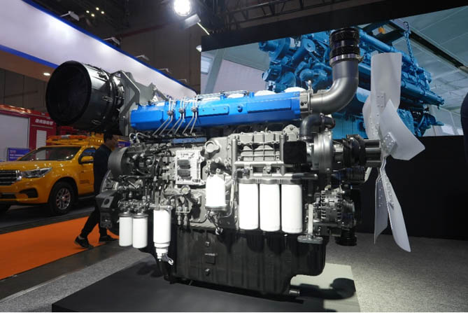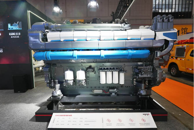 现场展出的16M55陆用发电柴油机额定功率3300kW,备用功率达3600kW,满足应急电源车、数据中心、园区、医院等关键设施的应急电力保障需求,具有快速响应、性能卓越、安全可靠、维保便利等优势。发动机可实现9s内起动,具备带载条件,满足快速供电的需求;超高爆压、超高轨压,动力输出更加强劲,燃油经济性更加出色;采用潍柴自主ECU,守护信息安全,历经多项耐久、性能测试,累计验证时长超10000h,可靠性高、稳定性强。同时,M55系列发动机采用全平台模块化设计,零部件通用性高,备件储存便利,维保成本低。