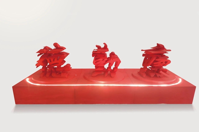作品是由中国重汽4名新入职大学生创作的3D打印模型,通过语音控制可旋转展示立体的“重德 重勤 重廉”,展现了青年职工的创造思维和智造水平。