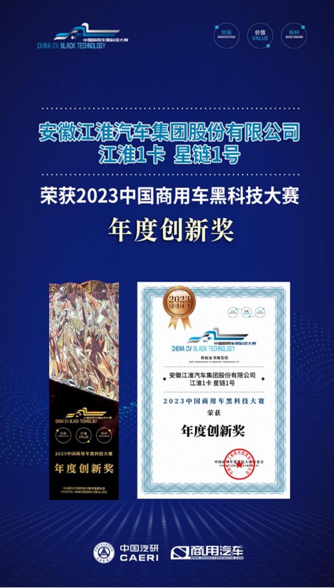 中国汽车工程研究院认证!江淮1卡星链1号荣获黑科技大赛年度创新奖