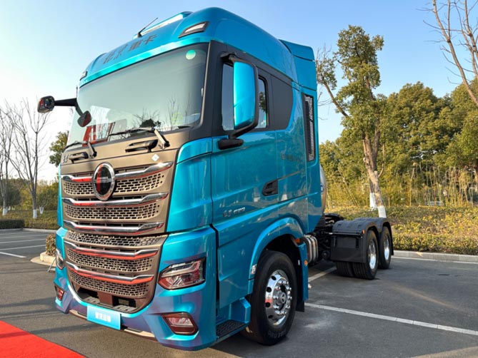 燃气重卡方面,北京追梦LNG普货运输牵引车,搭载的是X15N-530马力康明斯发动机,同时可以选择500马力,匹配采埃孚12挡AMT手自一体变速箱。整车自重轻至8.5T,数智节气更高效,且长、短途差异化标定,自动挡标定程序快速迭代,在保证操控性能持续提升情况下气耗优于手动挡,百公里综合气耗较同类车型低1-2kg。