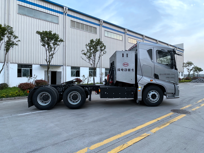 作为新能源重卡产品的“中枢系统”,比亚迪同时掌握电池、电机、电控“三电”核心技术及配套充电设施,将各种完全自主“黑科技”都应用到比亚迪Q3纯电动牵引车身上。