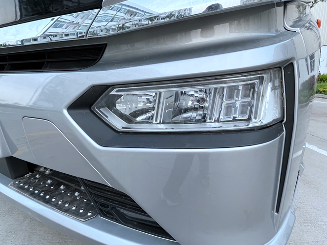 同时,其采用超强轻质结构,集成化组件,整车重量降低2%~3%,整车能耗降低1%~2%。另外,黑色前面板的下方镶嵌了一条横贯整个车头的镀铬装饰条,为整车外观添加了一抹亮色。驾驶室侧身的腰线使用了上扬的线条,让整车的造型更加犀利。
