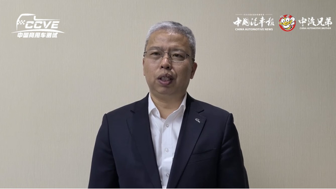 中国能源汽车传播集团党委副书记、副董事长、总经理,《中国汽车报》社社长辛宁介绍商用车综合性能测试(极限蓝牌冷藏车组)初衷