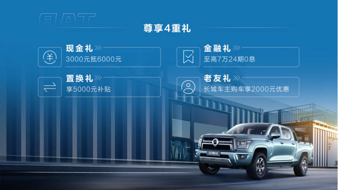 长城金刚炮8AT以“好开”“好用”“好省心”三大核心优势,持续引领中国商用皮卡品类价值向上跃升,助力用户生意好,生活更好。同时,长城金刚炮8AT还为购车用户带来现金礼、置换礼、金融礼、老友礼等四重大礼,物超所值,诚意满满。