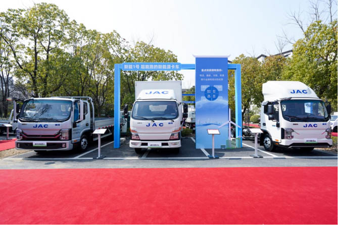 超级充方面,江淮1卡率先推出纯电单包专属底盘平台,率先搭载第3代单包电池,推出帅铃ES6/EV5、骏铃聚宝盆EV5、恺达EX6/EX5、多米EV1、工程车EG3等纯电轻卡、小卡、微卡,为城市配送、电商商贸、快递快运等细分市场带来超值选择,终端推广累计数万台,成功进入全球汽车准入法规最严苛的欧洲市场;超级混方面,帅铃HS6/HS7、骏铃聚宝盆、恺达HX6、混动房车、混动工程车等混动轻卡,路权好、节能环保、驾乘舒适、免购置税、无里程焦虑,精准覆盖多种用车场景;超级换方面,江淮1卡率先推广换电生态链,“换电1号”采用车电分离模式,快速降低购车用车成本,快速补能解决续航焦虑,可充可换扩大运营场景,已实现多批次大批量交付应用,有力推动换电轻卡规模化、专业化发展。