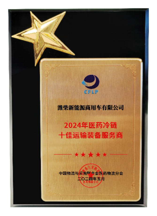 由中国物流与采购联合会主办的主题为“协同共生·链接价值”第十三届冷链药品供应链国际会议近日在青岛隆重召开。潍柴新能源商用车凭借自身过硬实力和高效服务荣获“2024年医药冷链十佳运输装备服务商”荣誉称号。此次荣誉的获得不仅是市场对于潍柴新能源商用车的品质的肯定,同时也要求潍柴新能源商用车持续为医药冷链运输输出高效可靠的运输解决方案。