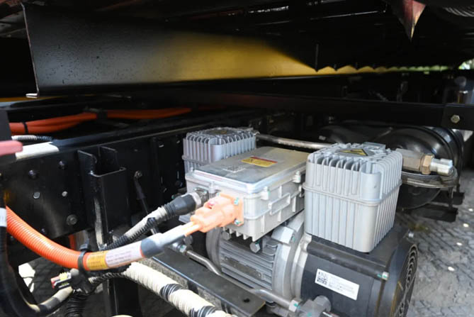 动力性方面,这款车搭载永磁同步电机,额定扭矩为170N·m,峰值扭矩更是达到了360N·m,遥遥领先于燃油轻卡,起步加速更快捷。