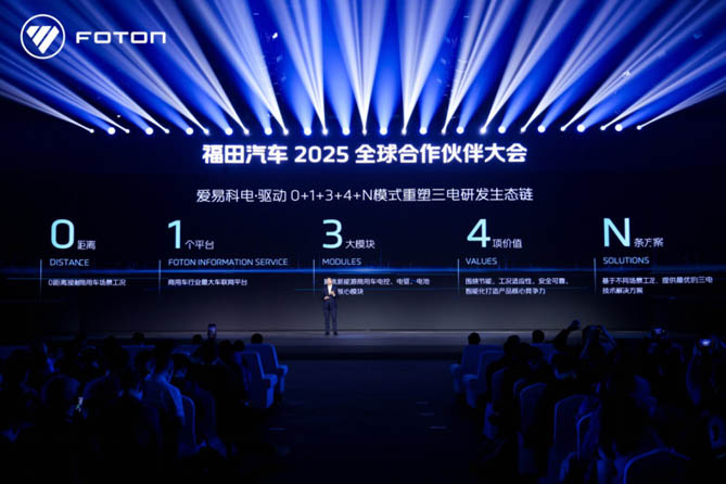 福田汽车副总经理秦志东对爱易科“电・驱动”进行了详细解读。秦总表示,爱易科“电·驱动”通过“0+1+3+4+N”模式重塑三电研发生态链。其中,“0”代表我们始终坚持用户至上的核心理念,0距离接触商用车使用工况,深入了解一手数据;“1”是指福田大数据平台,是目前商用车行业先进的车联网数据平台,是设计开发核心数据来源的基础;“3”指代电池、电控、电驱三大模块,构成了完整的爱易科“电·驱动”系统;“4”则对应着节能、安全、工况适应性和智能化四大价值维度;而“N”则代表了我们对未来的无限想象与可能性,预示着多元化的产品解决方案。