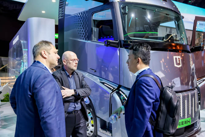 远程醇氢电动重卡星瀚H、远程醇氢电动超级VAN,此番亮相上海国际车展,吸引了专业观众广泛关注。
