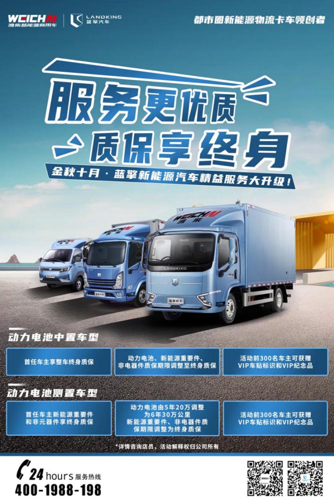 本次质保活动将伴随近期潍柴新能源蓝擎汽车新品全国上市体验之旅共同发布,感兴趣的卡友可以联系当地经销商来了解更多详细活动信息。
