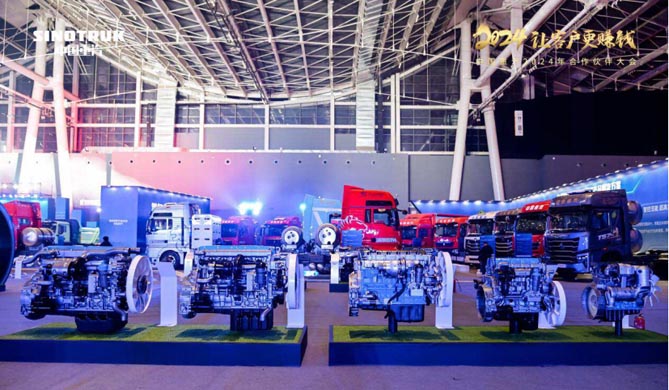 2024年1月5-7日,中国重汽2024年合作伙伴大会盛大举办,中国重汽S+技术品牌正式发布,78款整车及50件零部件产品震撼亮相,其中包括高效干线物流巅峰之作—汕德卡CH9/840马力牵引车、搭载S-IEC燃气智控技术的全新豪沃TS7-H/700马力燃气车、轻卡巅峰之作—HOWO轻卡8AT两款全新产品、黄河X7 L2+级智能驾驶牵引车及汕德卡GX氢燃料重卡,以科技赋能商用车绿色、智慧、高效升级。