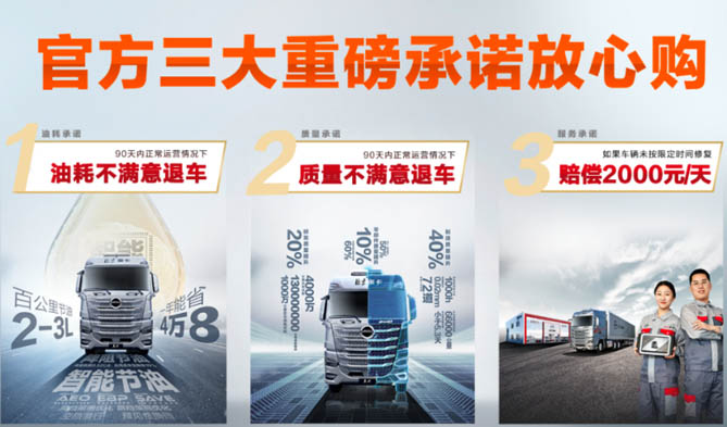 另外产品投放市场后,性能品质的自信与首批用户的好评反馈,让北京重卡有了扎实的底气,率先在行业推出针对质量、油耗及服务的3大承诺:不满意就退车,修不好按天赔,北京重卡以2个“后悔药”与1颗“定心丸”,有效消除用户对新产品质量、油耗、服务方面的顾虑。敢第一个在承诺领域大胆“吃螃蟹”,足可见北京重卡对产品品质及整车运营性能的自信,也体现了其让利客户,为用户创造更多价值的决心。