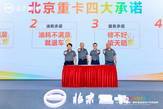 第三,四年保修再加“四大承诺”,保障用车无忧。北京重卡此前发布的服务政策包括:三大总成核心零部件最长10年质保;公路车赠送2年延保,相当于同类车型保4年等等。此次活动,北京重卡发布“质量不满意就退车”“油耗不满意就退车”“修不好按天赔”“二手车保值回购”四大承诺。产品上市一周年以来,北京重卡形成了1000多家服务网络,并且同时数字化系统实现精准服务,保障服务体系更为完善。