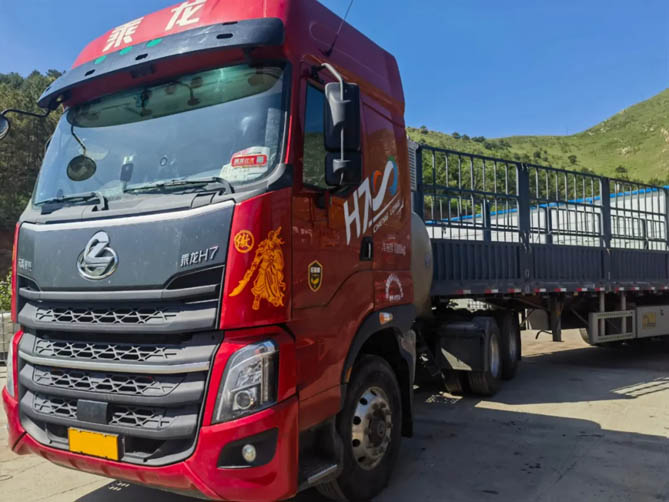 2023年,这家公司购入第一辆燃气车型乘龙H5,之后又陆续有乘龙H7和乘龙H5V的加入。现在,该公司共有22辆燃气重卡。郭先生表示:“乘龙的燃气车型具有多种优势,除了轻量化能多装货,就是很节省燃料。”