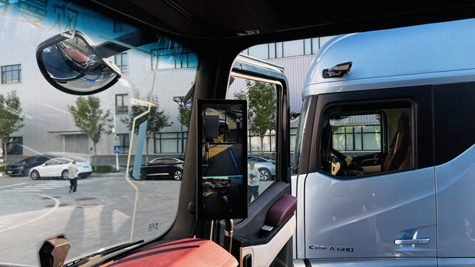 长途驾驶,安全永远是第一位的,部分车辆的后视镜在长途驾驶中往往存在视野受限、风阻大等问题。欧曼银河9则创新性地采用了电子后视镜设计,安装在驾驶室内部,更有效地减少空气阻力。同时,电子后视镜还提供了更广阔的视野范围,帮助驾驶者更好地观察车辆周围环境,确保行车安全。这一设计无疑为长途驾驶带来了更加便捷和安全的体验。