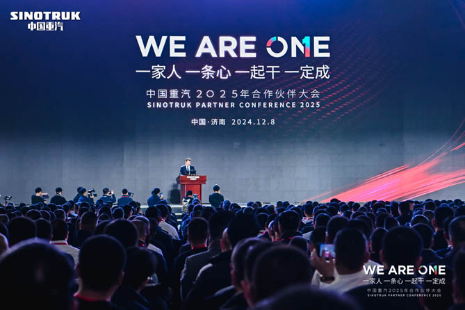 12月8日,以“We Are One — 一家人、一条心、一起干、一定成”为主题的“中国重汽2025年合作伙伴大会“在济南召开。