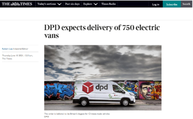 【英国《泰晤士报》报道DPD集团采购上汽大通MAXUS新能源车大单】