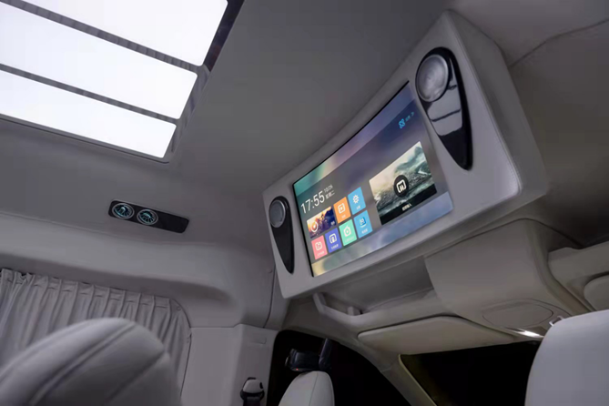 让科技赋能智慧出行,上汽大通MAXUS V90墨以车内丰富的智能化科技,满足了高端商务人士出行的种种诉求。V90墨搭载了一套先进的5G远程会议系统,可实时进行数据传输,同步集成会议信息及会议提醒,为用户做好每一次会议记录。同时,V90墨配备了24英寸的后排曲面大屏以及高品质音响,同时支持无线投屏,全面提升车内视频会议体验。