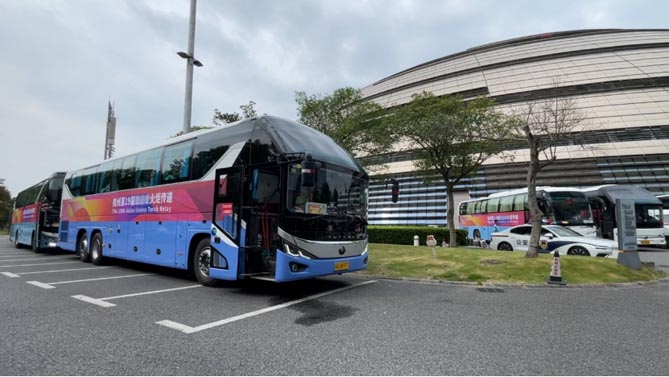 亚运会激战正酣,宇通T7领衔的宇通高端智能车队及服务保障团队时刻严阵以待,全力以赴保障场内外各项“赛事”圆满举行,为中国智造“添彩”,为民族品牌“提气”!