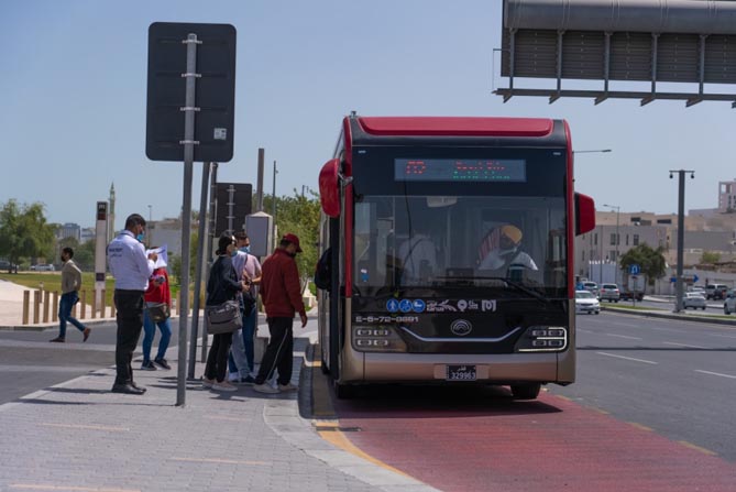 卡塔尔首都多哈主干线运营的宇通纯电动公交车
