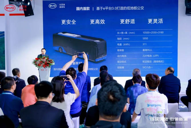 本次展会,比亚迪重磅发布了基于强大自研自控能力打造的客车e平台3.0,比亚迪商用车研究院李鹏副院长表示,“依托全产业链制造能力和对整车与零部件的深度理解,我们打造了客车e平台3.0,将安全、高效、智能提升到新的高度,引领客车电动化新潮。”