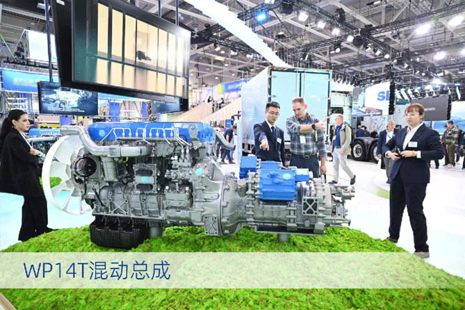 展会现场,潍柴带来了满足欧Ⅶ排放标准的53%高热效率柴油机、WP14T混动总成、WP15灵活燃料内燃机平台、300kW氢燃料电池动力系统等覆盖多技术路线的硬核产品,向全世界彰显了潍柴在传统动力和新能源动力领域的硬核实力。