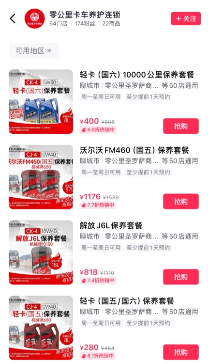 目前,柴机油机械师新品已在抖音"零公里卡车养护连锁"上线门店,为广大卡友准备了多重高性价比套餐,尽享超值油品体验。期待卡友们多多关注,同时也欢迎大家上线选购保养,相信柴机油机械师新品一定会给广大卡友带来更多惊喜,为卡友们创造更多价值!
