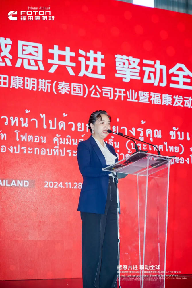 北汽福田副总裁冯静表示:“福田康明斯作为福田汽车旗下动力企业以及全球灯塔工厂,从重卡到轻卡、从客车到专用车,凭借先进的研发技术及智能制造,为福田汽车整车产品提供了强劲动力,为全球客户提供了丰富多样的选择。而泰国工厂的投产,将进一步优化供应链体系,提升福康发动机的供应能力和服务水平,为福田汽车在全球市场的竞争中增添新的活力,福康泰国工厂在短短一年之内便高效竣工并顺利投产,这一成就是福田汽车与康明斯长达17年深度合作历程中的一座里程碑。”