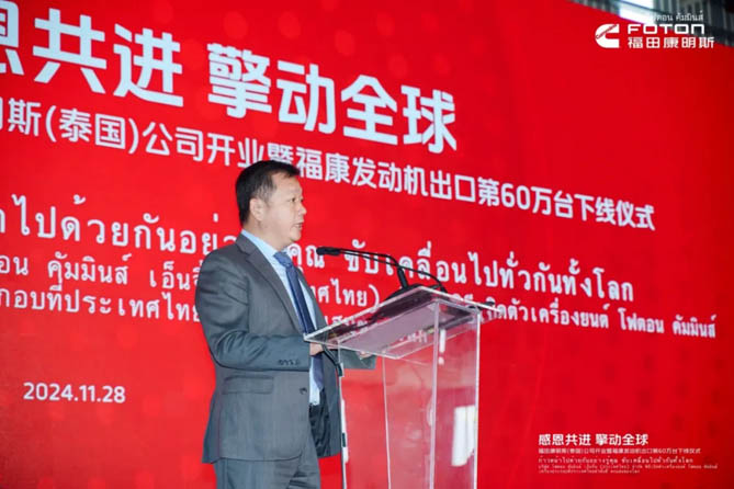 开业典礼上,福田康明斯总经理陈剑表示:“依托双方领先的整车及发动机技术研发、全面布局的销售、服务网络以及北京福田康明斯全球“灯塔工厂”的智造技术,福田康明斯已经为全球100多个国家和地区提供了多元动力解决方案,从裸机出口到助力整车出口,从欧洲、北美到全球市场,从聚焦商用车拓展到非道路应用,福田康明斯持续助力全球用户取得成功。福康泰国公司将共享北京福田康明斯先进的研发技术、共享全球供应链,坚守“零缺陷”质量原则,为全球用户提供高质量的发动机产品和智慧服务。”
