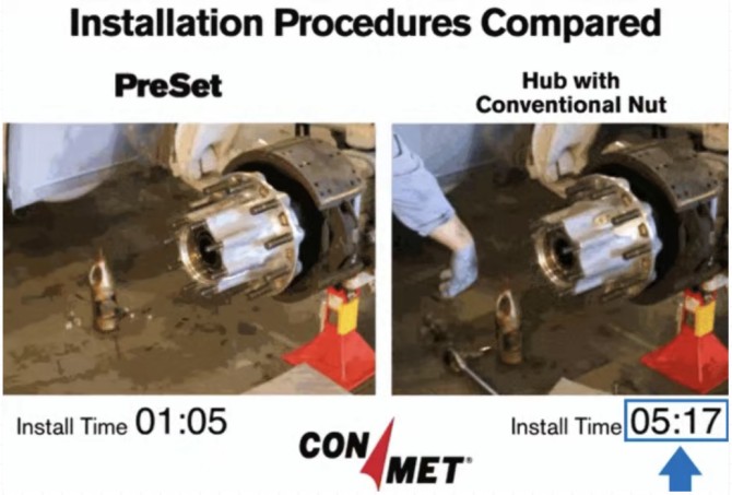 康迈 PreSet® 轮毂单元(左) v.s传统轮毂单元(右)
