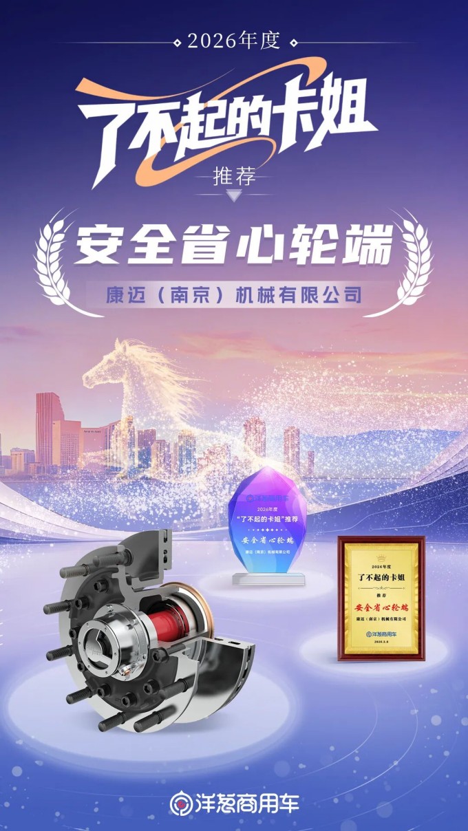 2026年3月8日,在洋葱商用车主办的第五届“了不起的卡姐”活动中,康迈轮端凭借优异表现,获得“安全省心轮端”奖。该奖项经由卡姐群体自主评选产生,并由全国杰出女性卡车司机共同见证,充分体现了女性从业者对康迈产品实力与品牌信赖的真实认可。