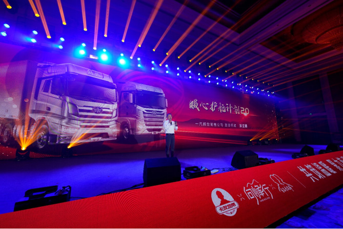(一汽解放营销总部副部长,销售公司副总经理 张立国发布“暖心护航计划2.0”照片)