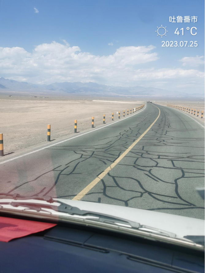吐鲁番,中国热极,每年被暴晒的日子达到了100多天,气温超过40℃是家常便饭。地表温度最巅峰的实测值甚至到了70℃,在这样的极端高温下,随手往地上打个蛋就成了荷包蛋。每年7月,吐鲁番地区进入一年中最热的时期,滚滚热浪似乎要把一切都吞噬掉。要问什么人愿意在这个时候来到吐鲁番,除了猎奇且有勇气的游客外,就只有被称为“反季节候鸟”的汽车标定工程师了。